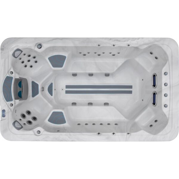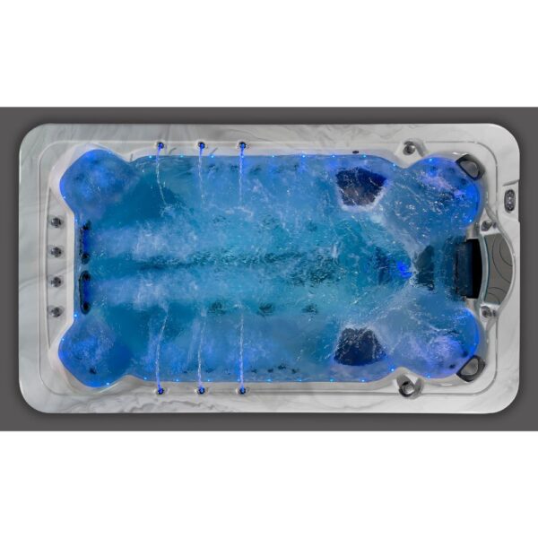 This spacious swim spa is designed for both relaxation and fitness, offering 6 comfortable seats and 2 benches. Equipped with 36 powerful jets, including River Jets, it provides targeted massage and resistance for aquatic exercise. The Balboa BP2000 control system ensures seamless operation, while the Aristech Acrylic shell and galvanized support frame deliver lasting durability. Perfect for year-round wellness, it combines elegance and functionality in a compact yet spacious design.