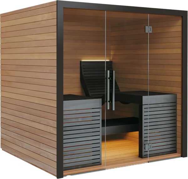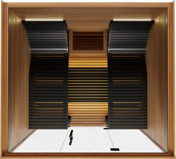 Crafted with horizontally paneled Thermo Aspen for superior durability and a warm, inviting ambiance, the interior features ergonomically designed benches and backrests for exceptional support. Dimmable LED bar lighting behind the backrest and under the benches creates a tranquil atmosphere for true relaxation. Experience this luxurious oasis with easy installation and minimal maintenance.