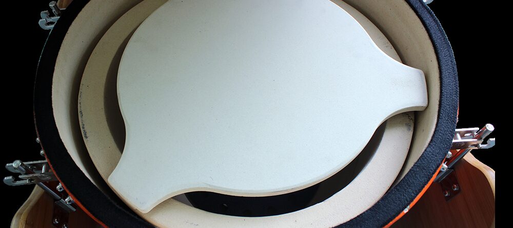 This pizza stone for the Big Blue Egg grill is a thick, heat-retaining slab designed to sit directly on grill grate and create oven-like conditions outdoors.