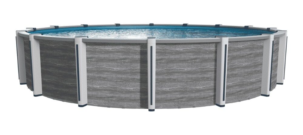Dive into perfect harmony with the Cosmopolitan round above ground swimming pool! This contemporary design seamlessly blends durability and style, ensuring a sleek and stylish aquatic experience. Utilizing state-of-the-art injection molding technology, this product is engineered for ultra-durability, promising years of reliable use. The resin components of this pool feature a solid color throughout, guaranteeing they will never fade. Additionally, the pool is robust and strong, equipped with an all aluminum wall, ensuring compatibility with virtually all chemical systems. Includes:...