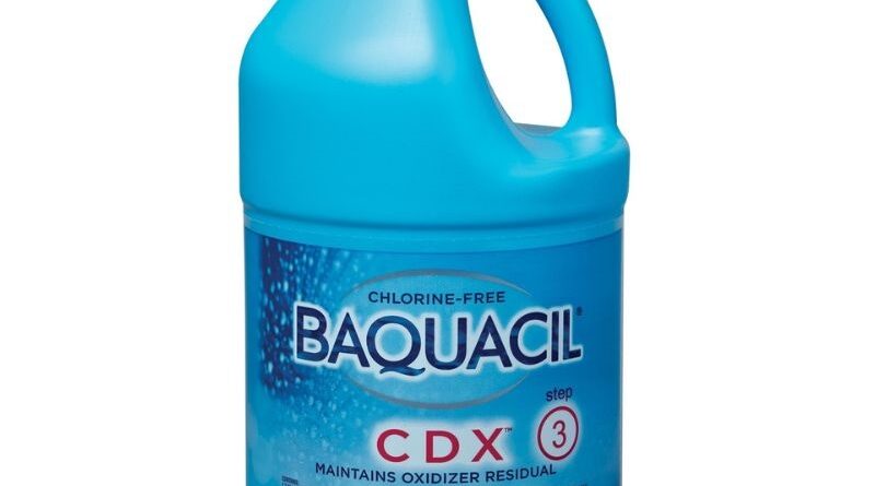 The principle chemical in the BAQUACIL® Pool Care System is a chlorine-free liquid sanitizer that provides safe, consistent control of bacteria and algae. It has a long shelf life, is highly stable in water and lasts longer than chlorine without any of chlorine’s unpleasant side effects. Compatible with BAQUACIL® pools only. Step 1 in the 3-step BAQUACIL® Pool Care System. Available sizes: 1/2 gal.